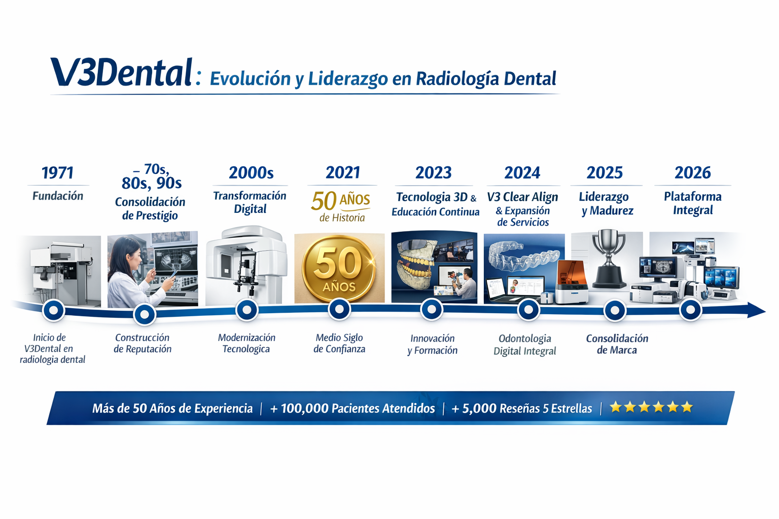 En V3Dental llevamos más de cinco décadas evolucionando junto con la odontología. Desde nuestra fundación en 1971, hemos trabajado con un mismo compromiso: brindar estudios de radiología dental con alta calidad diagnóstica, atención profesional y una experiencia confiable para pacientes y especialistas.